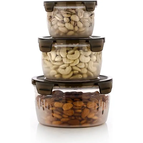 Airtight Plastic Dry Fruit Storage Containers (Set of 3) aapke kitchen ke liye ek practical aur stylish storage solution hai. High-quality food-grade plastic se bane hue yeh containers strong, durable aur safe hote hain.