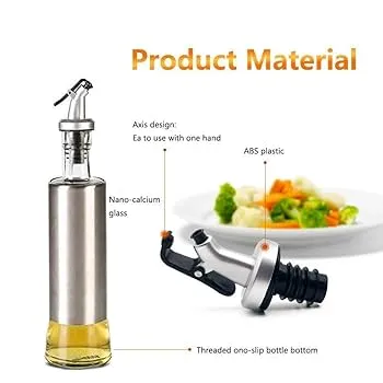 Yeh bottle high-quality glass se bani hai jo safe, durable aur eco-friendly hai. Leak-proof design aur ergonomic grip ise daily kitchen use ke liye perfect banate hain. Transparent body se oil level easily visible hai, aur stylish design kitchen me elegance bhi add karta hai.