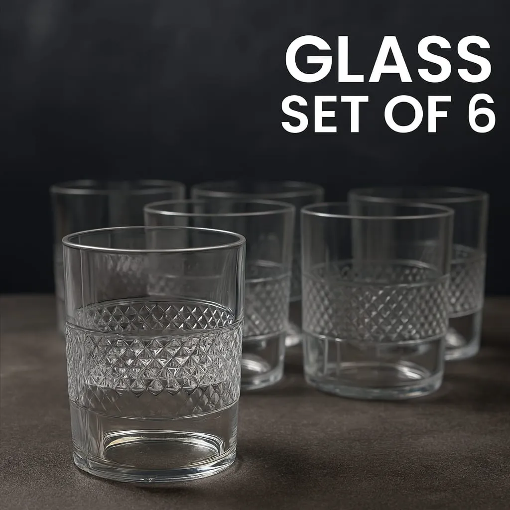 Yeh Plastic Drinking Glass Set (Set of 6) daily household use ke liye ideal choice hai. High-quality plastic se bana hua hai jo break hone ka tension kam karta hai, especially kids aur outdoor use ke liye. Elegant textured design glasses ko premium look deta hai. Water, juice, cold drinks, lemonade aur soft drinks ke liye suitable hai. Lightweight hone ki wajah se handle karna easy hai aur cleaning bhi simple hai. Home, office, parties aur picnics ke liye perfect glass set.
