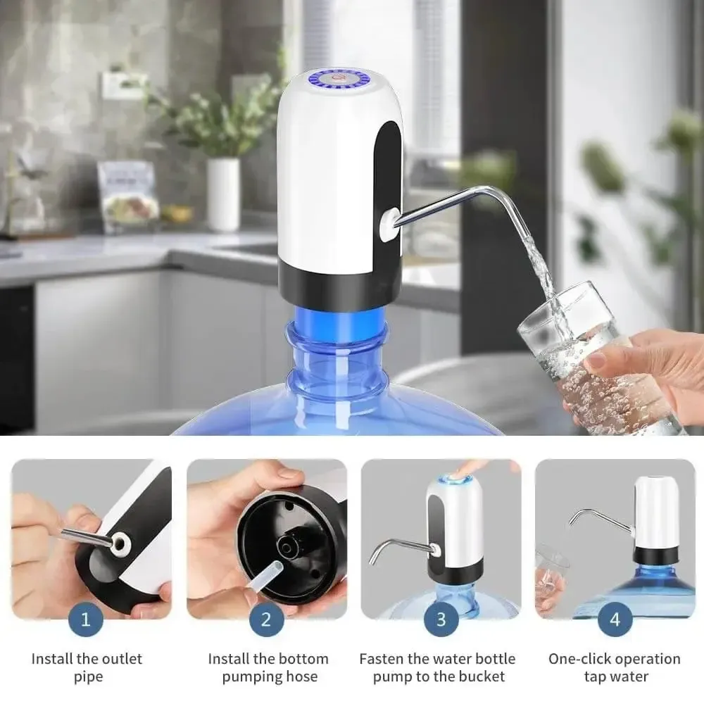 Yeh pump rechargeable battery se chalti hai aur USB charging ke through convenient use possible hai. Lightweight aur ergonomic design se ise carry aur operate karna easy hota hai. High-quality, food-grade material se bana hone ki wajah se paani safe aur hygienic rehta hai.
